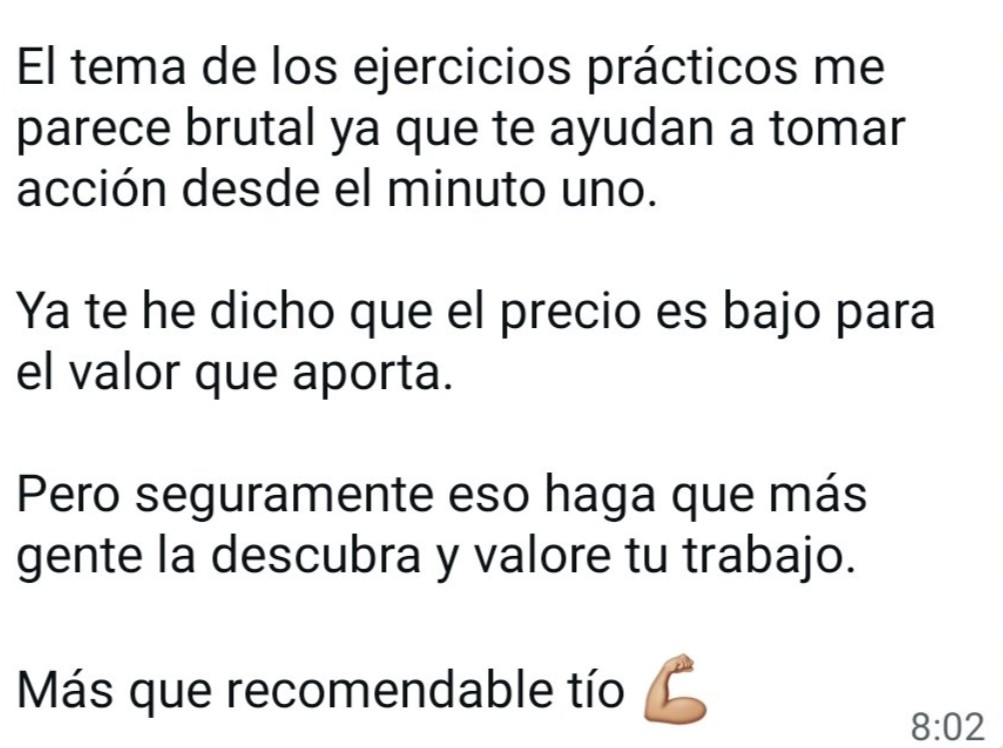 Es una guía con material práctico, con ejemplos reales, y con un paso a paso aplicable, que podría vender por 100€ y quedarme más ancho que largo